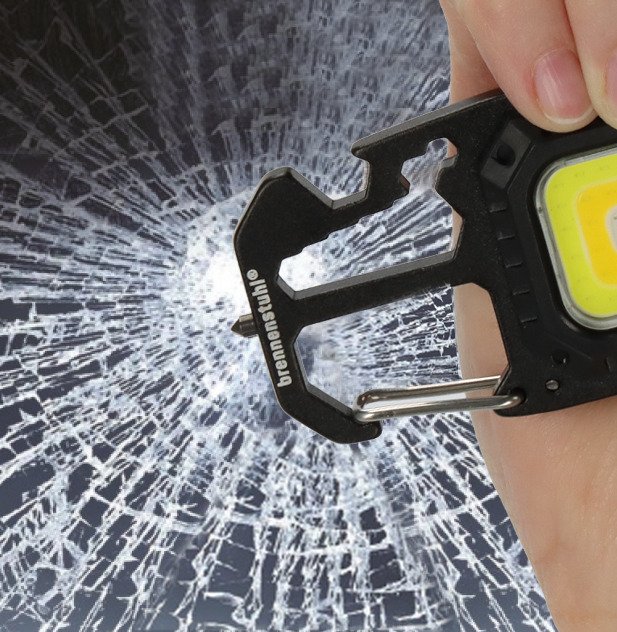 - La mini Linterna LED multifuncional combina 6 prácticas funciones: 7 funciones de luz, martillo de ventana, mosquetón, abrebotellas, 4 destornilladores y 7 llaves - perfecta para el uso diario, en exteriores y emergencias, siempre a mano