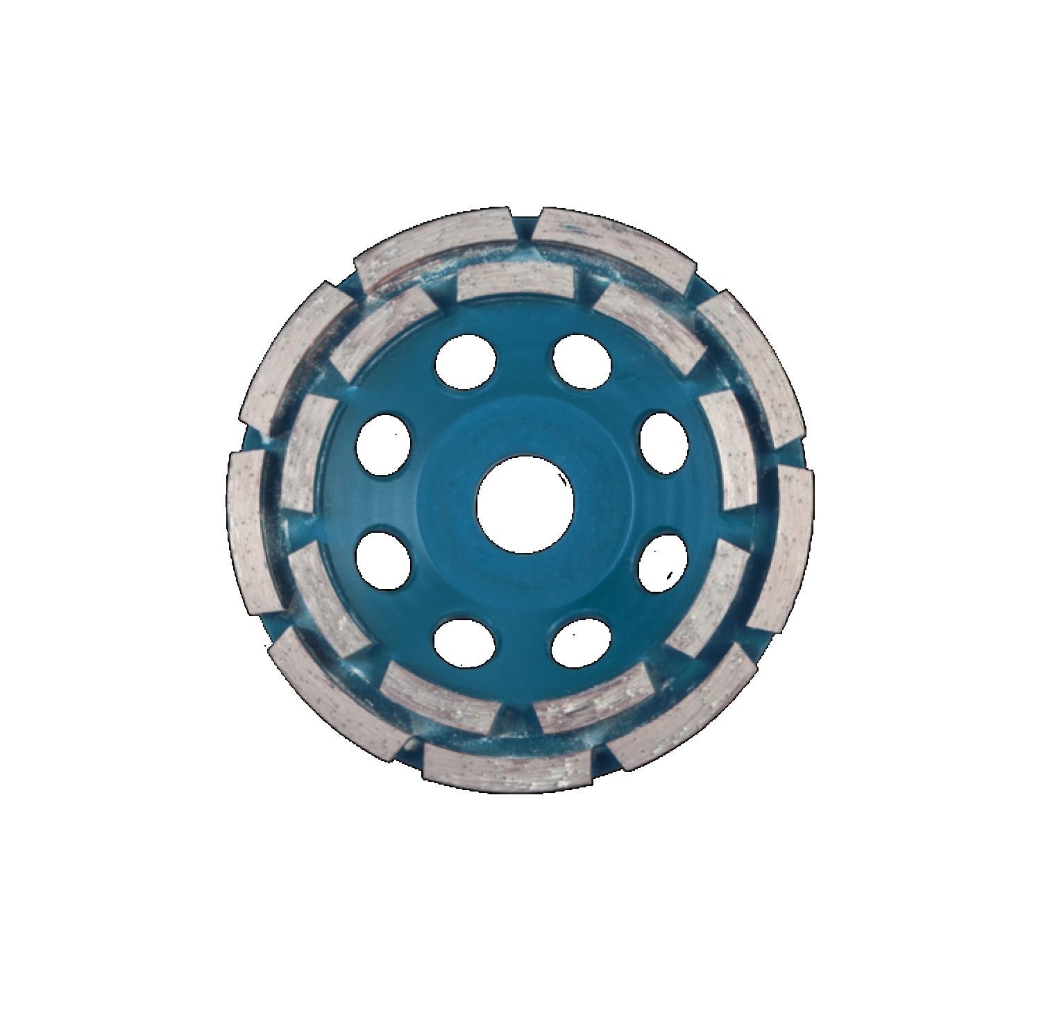 - Los segmentos sinterizados se fijan al cuerpo de acero, de altas prestaciones, de la muela mediante la técnica de la soldadura láser, la más fuerte y resistente. Este cuerpo de acero presenta una serie de orificios para facilitar la evacuación de los restos de material de desbaste e incrementar la refrigeración de la muela de diamante.