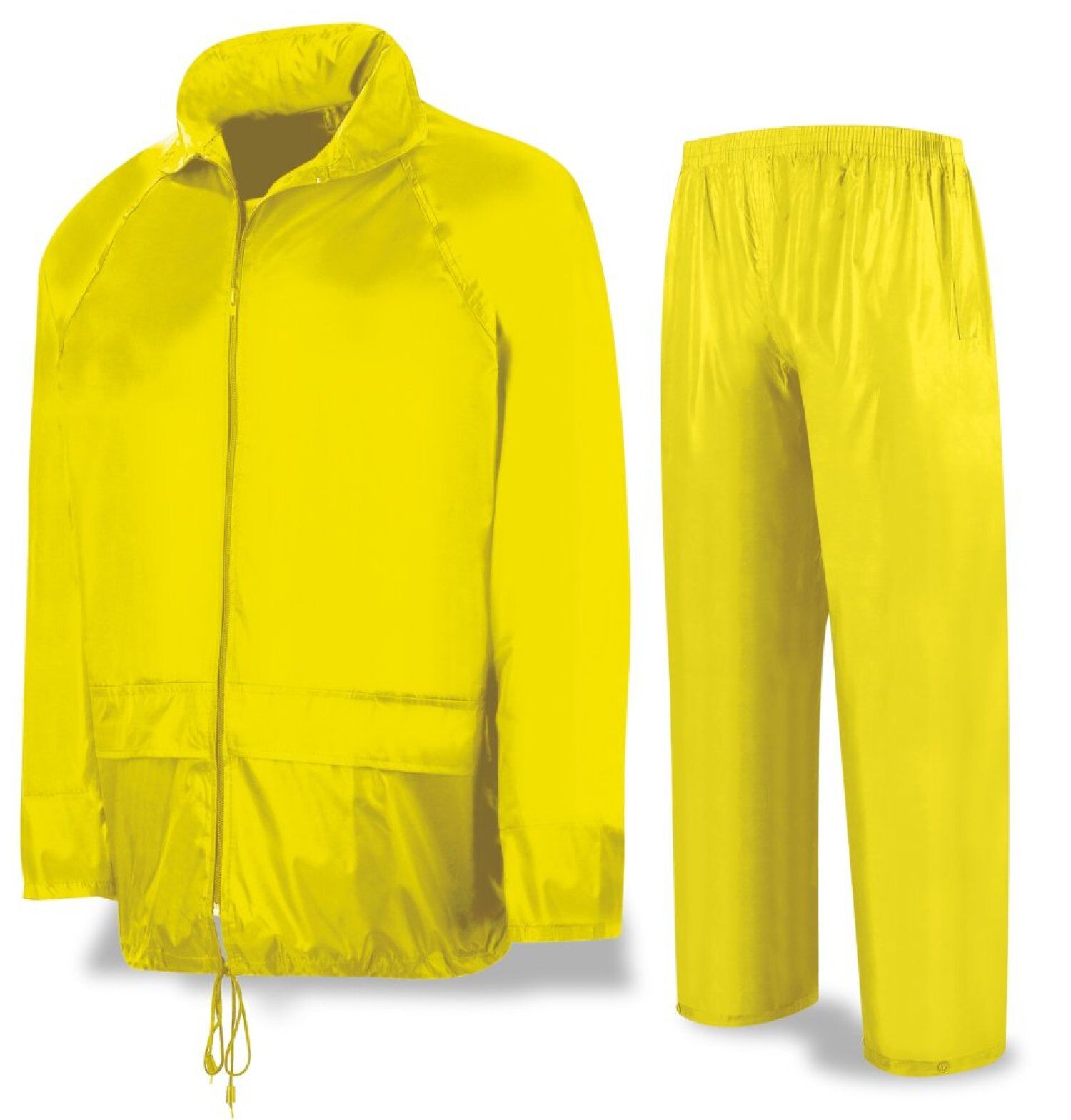 - Traje de Agua compuesto por chaqueta con capucha escamoteable y pantalón, de Poliéster/PVC. Costuras termoselladas.
